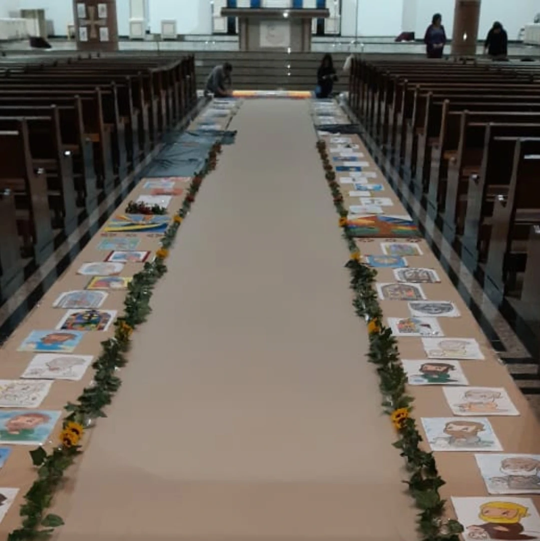A cidade de Ponta Grossa não terá a tradicional procissão de Corpus Christi em decorrência da pandemia do novo coronavírus. Por conta disso, a Paróquia Sant'Ana mobilizou os alunos da catequese para que enviassem desenhos, que foram montados em forma dos tradicionais tapetes dentro da Igreja Catedral. Cerca de 80 alunos participaram da ação.