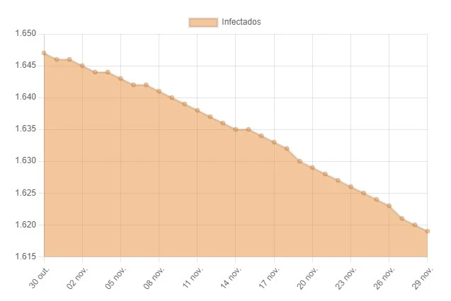 1.646 casos de COVID-19 ativos. Já no final do mês, no dia 30/11, o número pode cair para