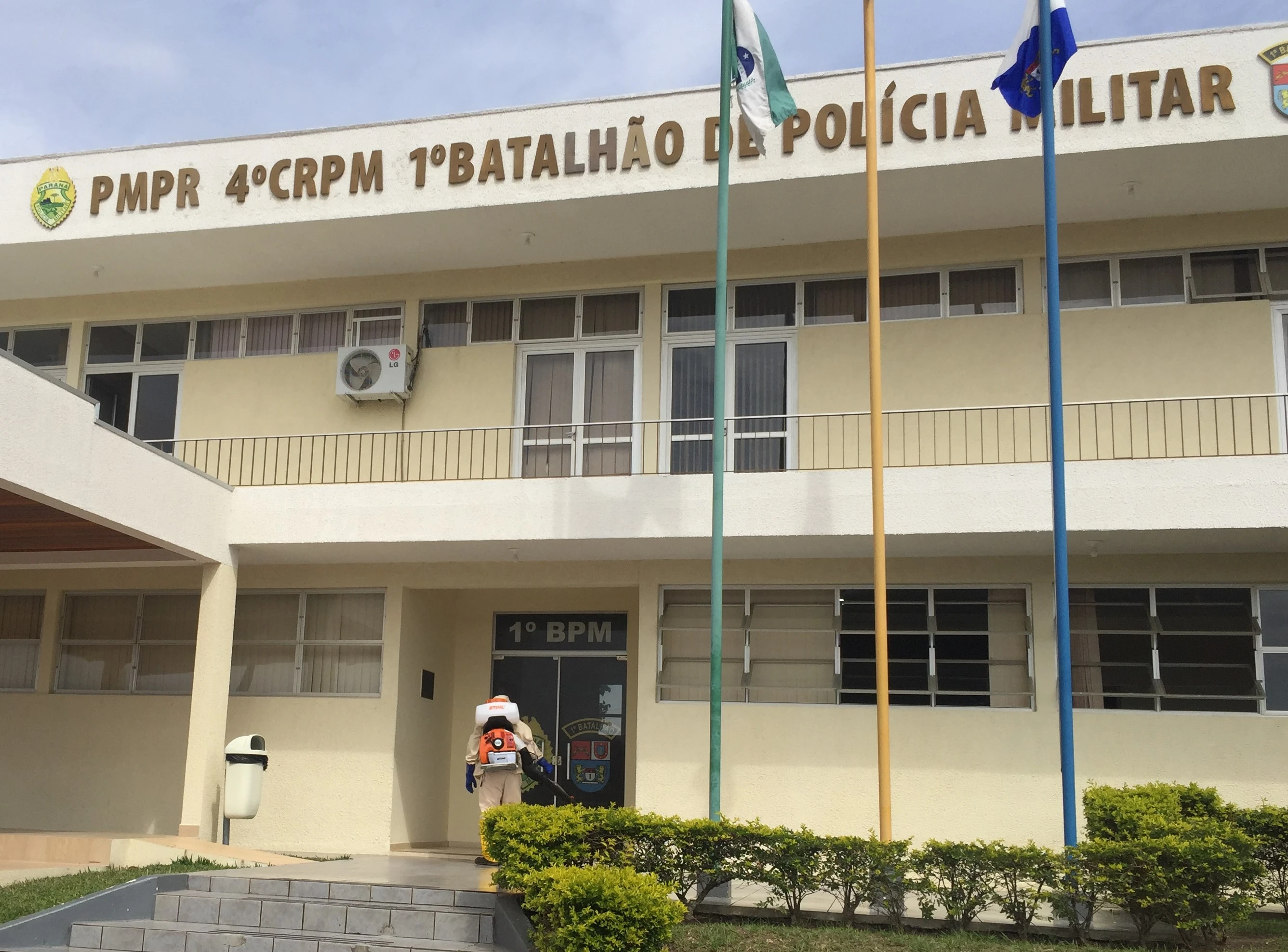 Além disso, a sede do 1º BPM também foi desinfectada. Áreas externas e de comum acesso foram alvos da higienização. O material utilizado não afeta humanos e animais, sendo imediatamente liberados para os devidos fins.