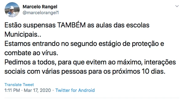 Após afirma que as aulas seriam facultativas, o prefeito Marcelo Rangel decidiu suspender as atividades na rede municipal de ensino de Ponta Grossa por tempo indeterminado. A medida foi anunciada nesta terça-feira (17) e tem como objetivo prevenir o contágio por coronavírus.