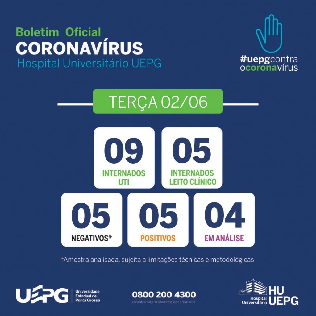 Ponta Grossa possui apenas um paciente diagnosticado com o novo coronavírus internado em leito clínico no Hospital Universitário Regional dos Campos Gerais (HU-UEPG). A informação foi dada pelo prefeito Marcelo Rangel, na manhã desta quarta-feira (3), durante o ‘Programa Nilson de Oliveira’ apresentado por ele na Rádio Mundi FM.