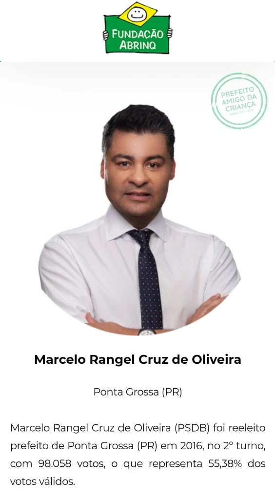 A cidade de Ponta Grossa está no seleto grupo definido pela Fundação Abrinq, isso porque o prefeito Marcelo Rangel foi um dos agraciados com o título 'Prefeito Amigo da Criança'. A iniciativa busca premiar gestores que trabalham com a implantação de políticas que resultem em avanços positivos na garantia dos direitos das crianças e adolescentes. Rangel usou as redes sociais para comentar sobre a vitória do prêmio 'Prefeito Amigo da Criança'. A notícia foi dada no começo da tarde desta quarta-feira (01).