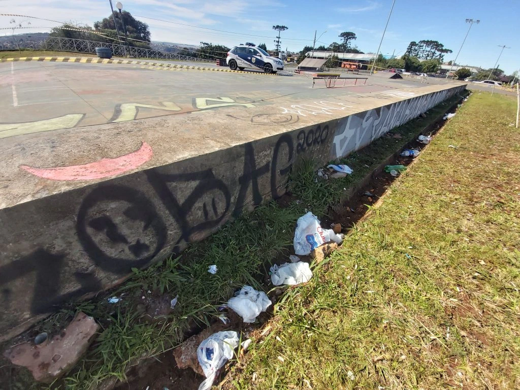 A Guarda Municipal de Ponta Grossa interditou na manhã desta sexta-feira (10) a pista de skate e a quadra poliesportiva localizadas na região do Parque Linear, em Oficinas. A ação foi tomada depois que a reportagem do D'Ponta News flagrou diversos jovens sem máscaras e aglomerados no local.