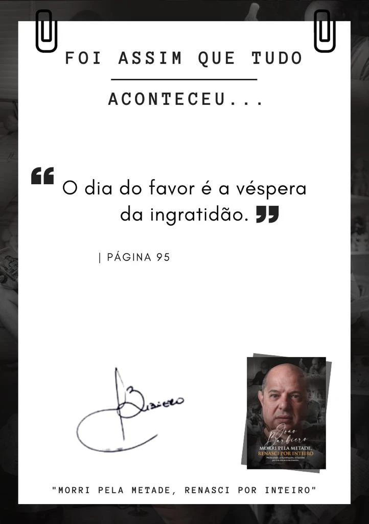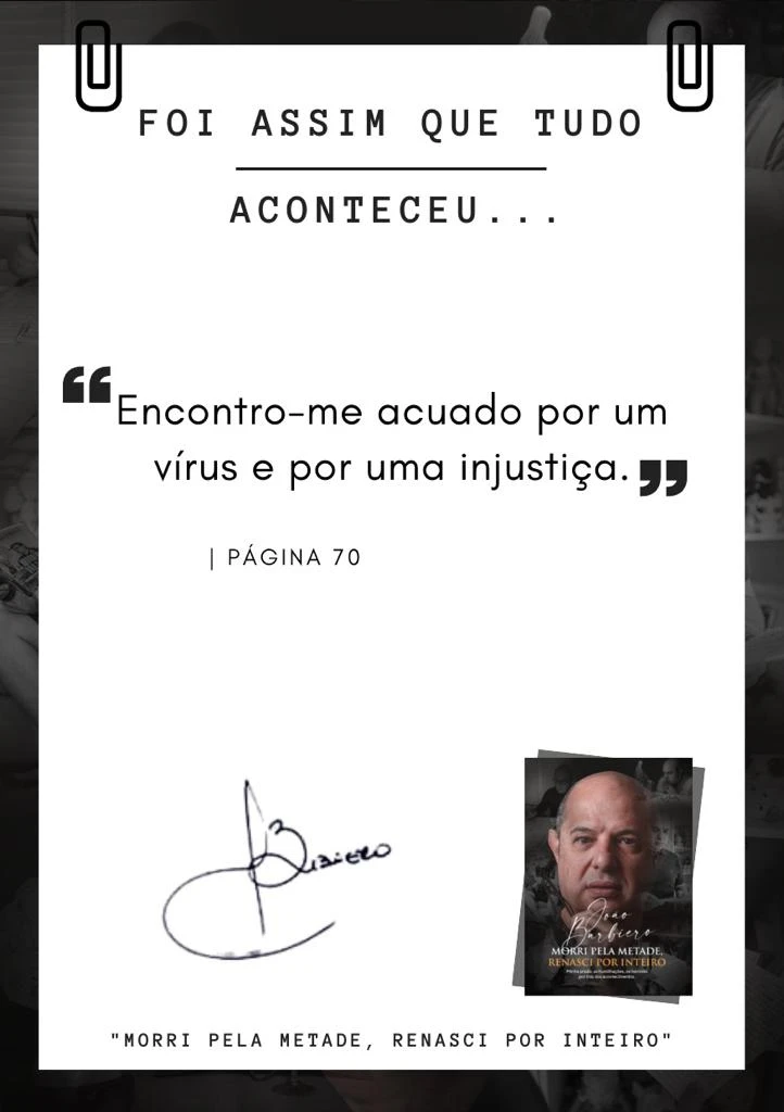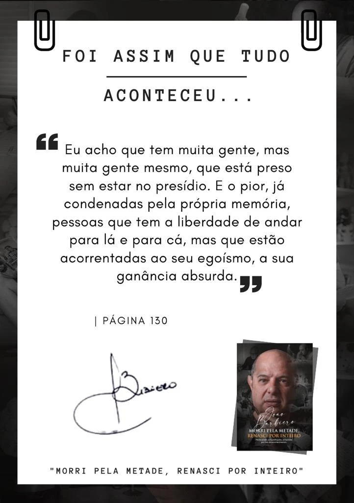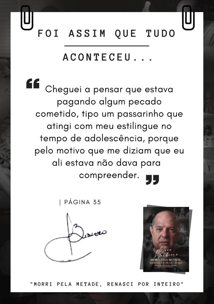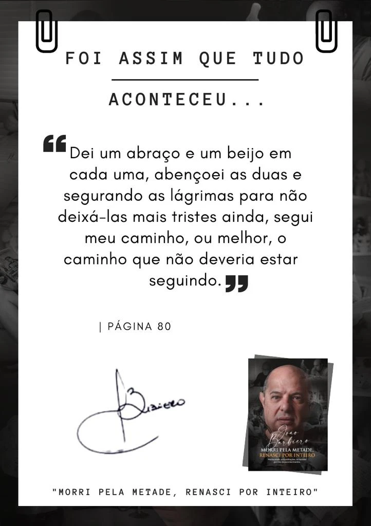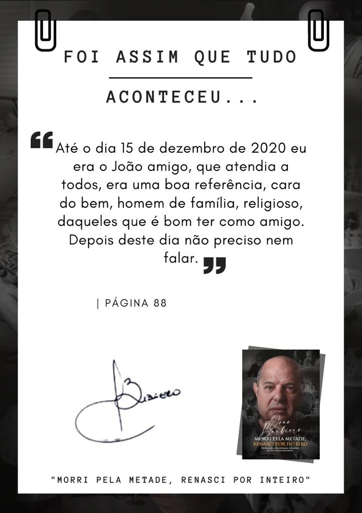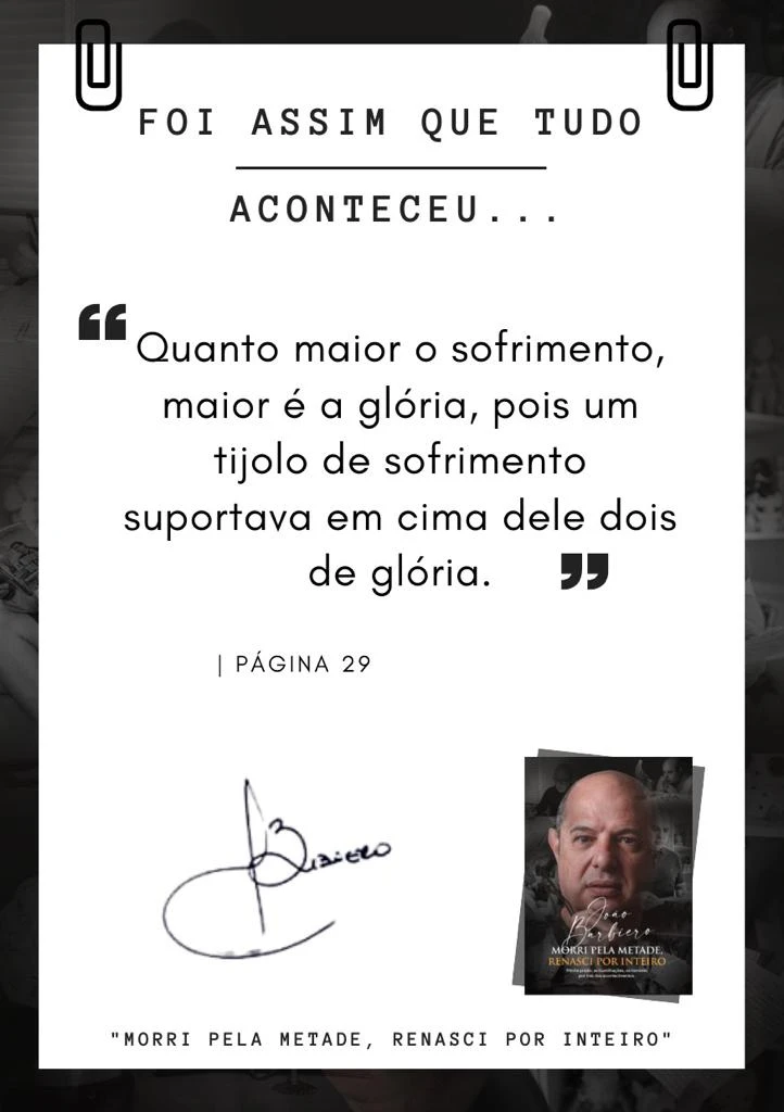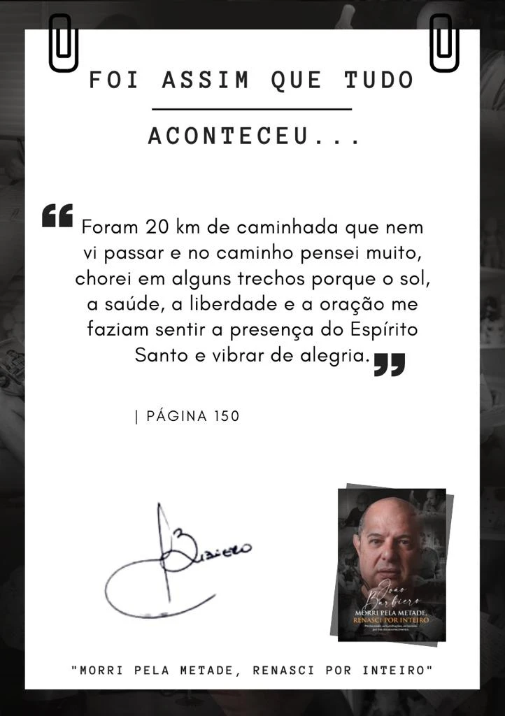 O livro ‘Morri pela metade, renasci por inteiro’, escrito pelo empresário e comunicador João Barbiero, agora pode ser adquirido pelo