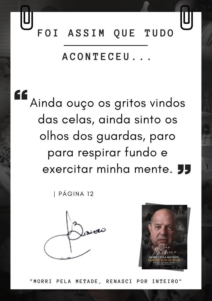 A obra relata as peculiaridades da prisão efetuada na Operação Saturno, do Grupo de Atuação Especial de Combate ao Crime Organizado (Gaeco), os temores e o desespero do empresário, que conta todos os detalhes, desde a chegada dos policiais, a prisão em frente de sua esposa e filhas pequenas, bem como momentos que viveu nos dias em que passou no cárcere. A leitura mostra, além de tudo, a superação através da fé e pode ajudar outras pessoas em suas batalhas diárias, conforme relata o autor. “Tenho encontrado muita gente que está passando por problemas de saúde e tem se inspirado na leitura do livro. Isso já me realiza e mostra a missão que tenho através dessa história que relatei por inteiro”, conta Barbiero.