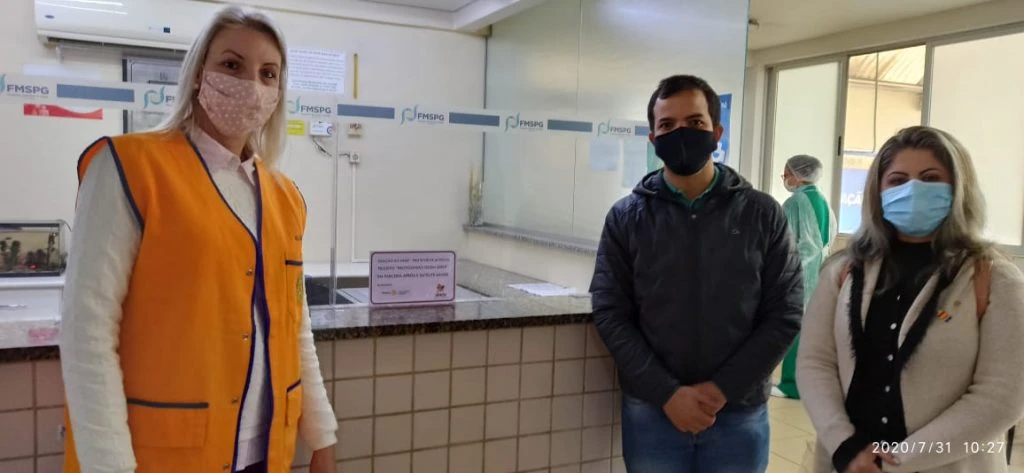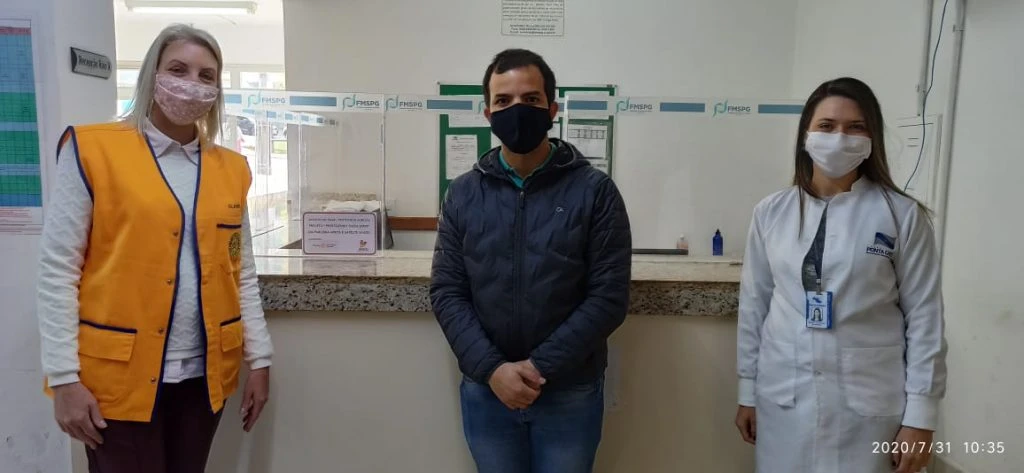 Na manhã desta sexta-feira (31), o Rotary Alagados de Ponta Grossa fez a entrega oficial de materiais para o Hospital Municipal da cidade. Entre os produtos entregues estavam protetores de balcões acrílicos, que visam proteger os funcionários e atendentes na entrada do local, além de chinelos e toalhas que serão entregues aos pacientes que necessitam, através do setor de assistência social do Hospital