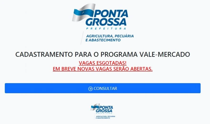 O cadastro deverá ser realizado através do portal da prefeitura no link: https://smapa.pontagrossa.pr.gov.br/cadastrovalemercado. O cadastramento ficará aberto no site diariamente das 9h às 17h.