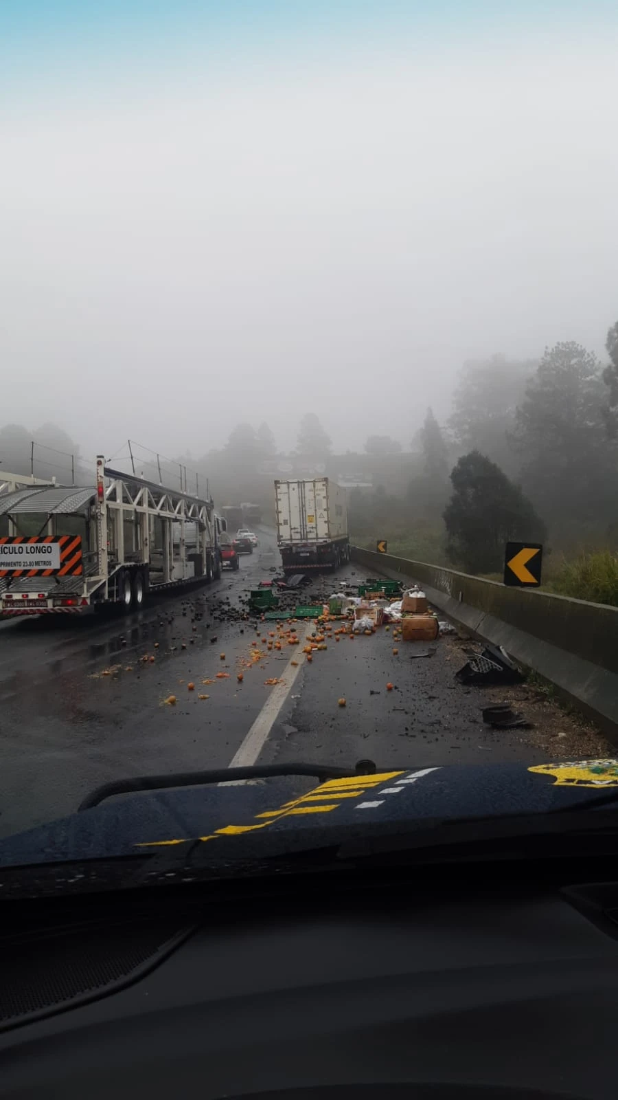 A pista Curitiba-Ponta Grossa permaneceu interditada entre as 15h45 e 21h45, formando aproximadamente 20 quilômetros de fila.