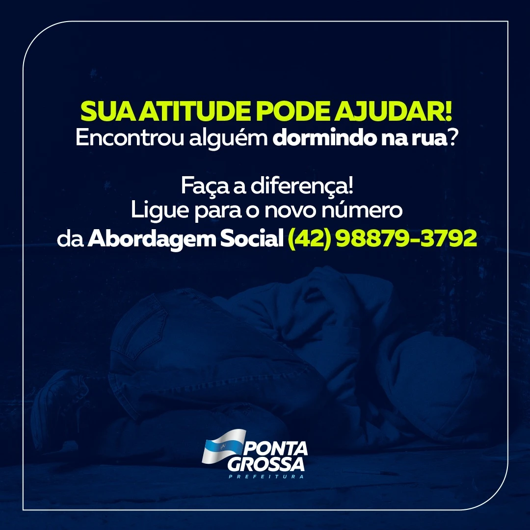 A Fundação de Assistência Social de Ponta Grossa informa que o telefone do Serviço de Abordagem Social mudou. Agora a equipe é acionada pelo número (42) 98879-3792.