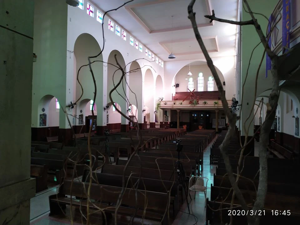 IMAGEM MOSTRA IGREJA DO ROSÁRIO VAZIA DURANTE A MISSA.