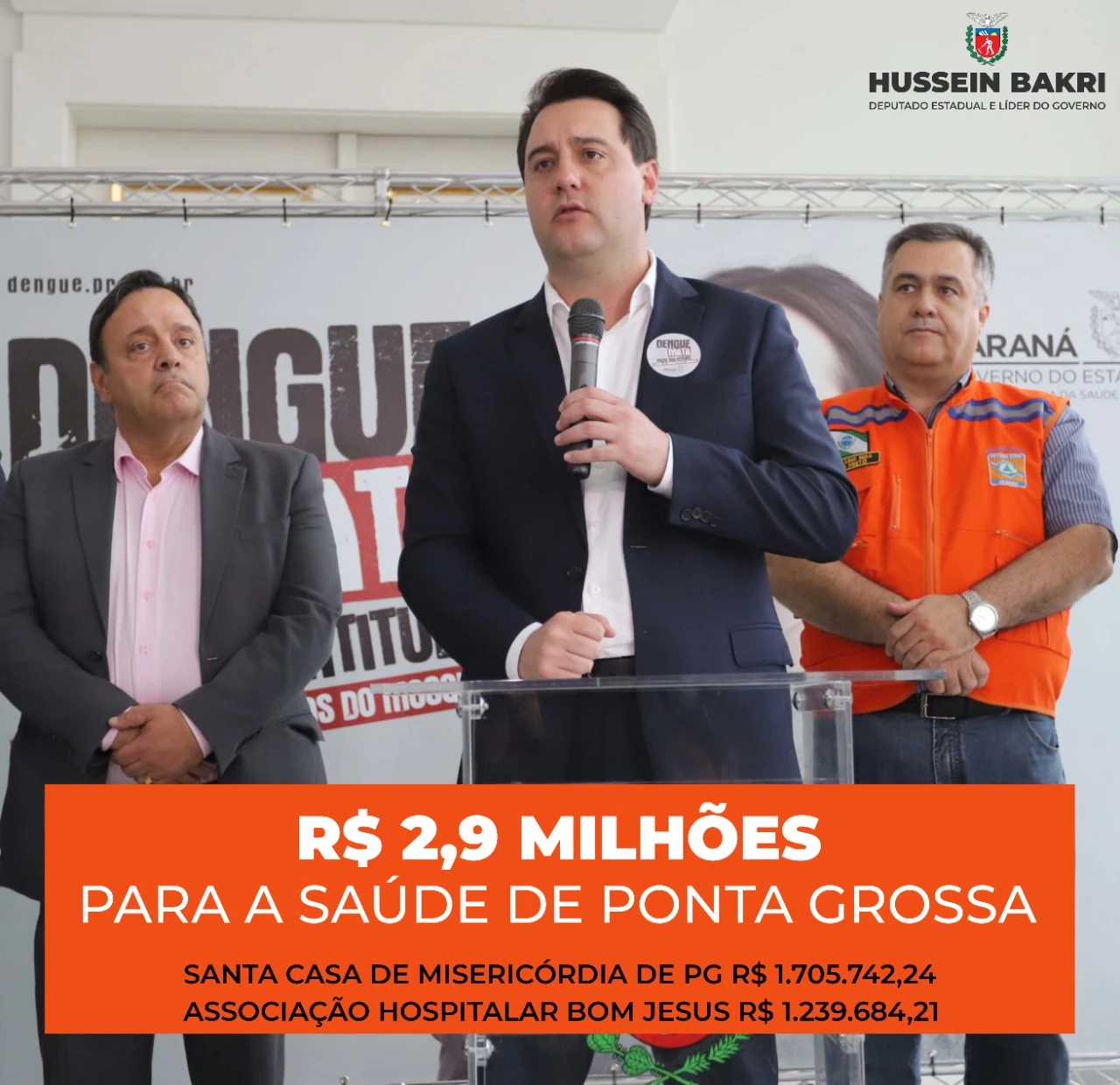 Através das redes sociais o deputado estadual e líder do governo na Assembleia Legislativa, Hussein Bakri comemorou os investimentos. "Investir em saúde sempre deve ser prioridade do poder público, ainda mais agora neste momento de pandemia. Por isso, numa articulação da Secretaria de Estado da Saúde, o Governo Federal irá depositar amanhã uma verba extra de quase R$ 3 milhões para custeio da Santa Casa e do Hospital Bom Jesus, ambos de Ponta Grossa. Os recursos vão garantir um atendimento hospitalar de ainda mais qualidade à população dos Campos Gerais", escreveu o parlamentar.