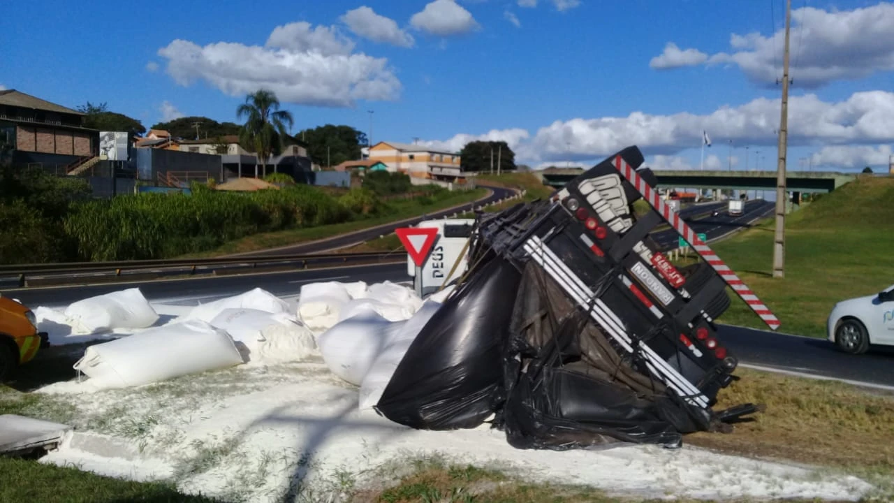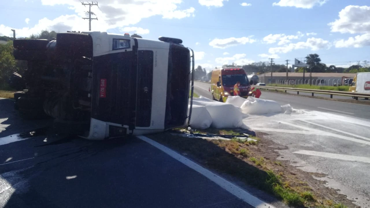 Na tarde desta terça-feira (24) um tombamento de carreta movimentou equipes da PRF e da CCR Rodonorte até a chamada alça de acesso à BR-376, no viaduto do Vendrami em Ponta Grossa. A carreta estava carregada com trigo dentro de 'bags'. O motorista teve ferimentos leves, foi avaliado por socorristas e liberado ainda no local do acidente.