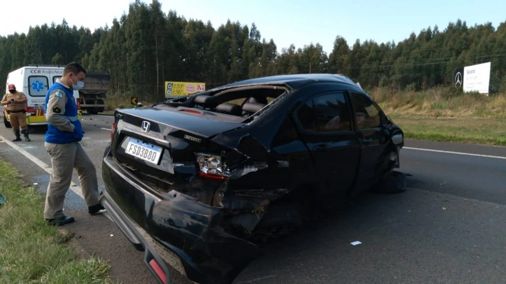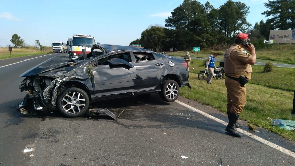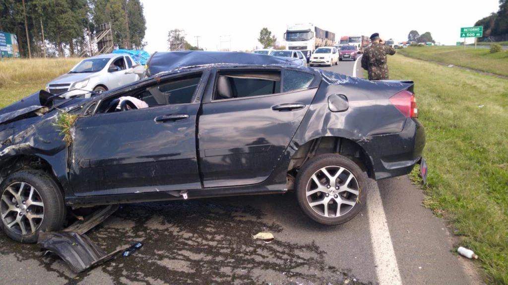 Na tarde desta sexta-feira (17) um acidente deixou dois jovens feridos. Um veículo Honda City perdeu a direção enquanto seguia na PR-151, entre Ponta Grossa e Carambeí, e capotou.