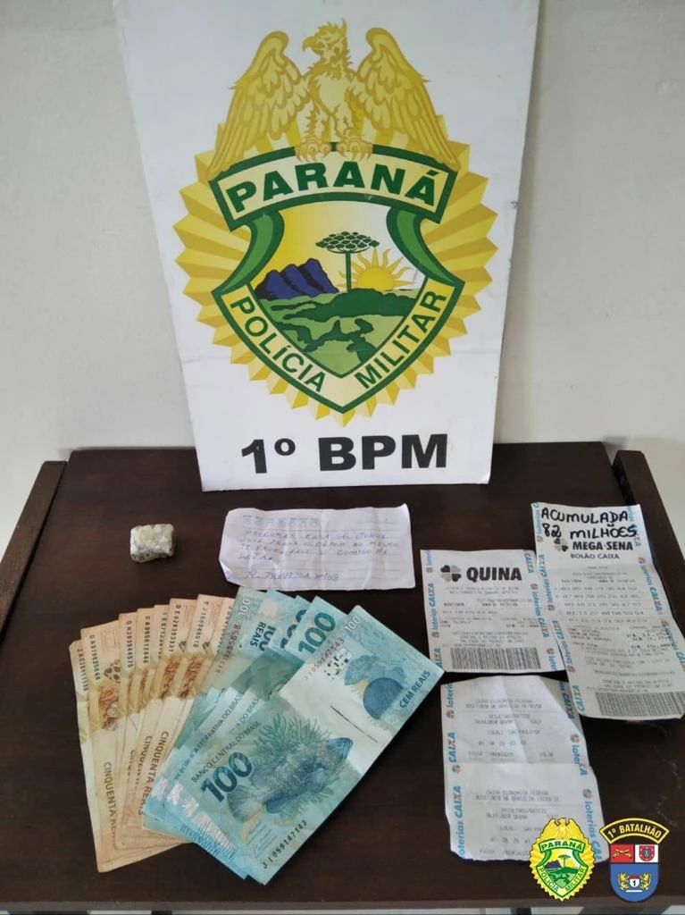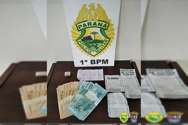 Chegando no local, os agentes militares encontraram os suspeitos, os quais receberam voz de abordagem. Durantes buscas foram encontrados diversos bilhetes de loterias com resultados marcados, além de certa quantia em dinheiro e um invólucro contendo certa porção de maconha.