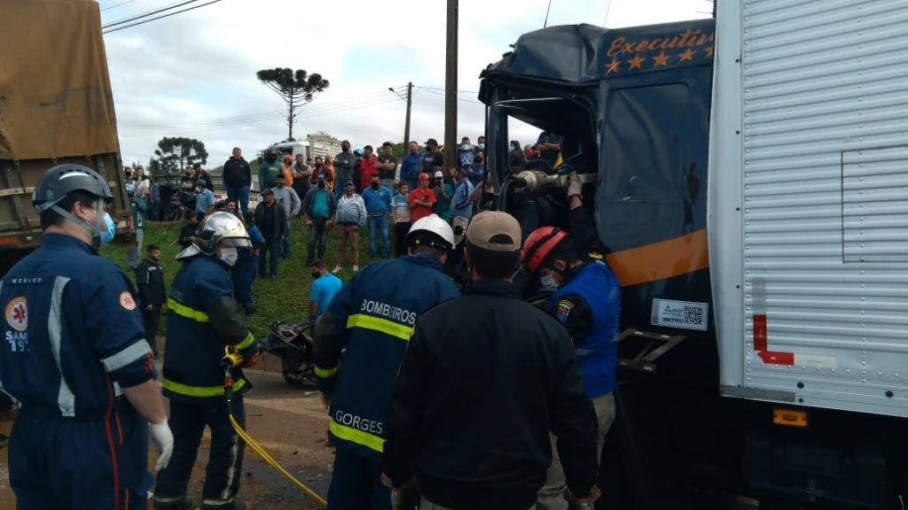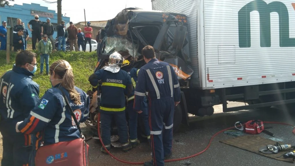 Na tarde desta terça-feira (22), uma colisão entre dois caminhões deixou um dos motoristas preso nas ferragens. O fato foi na avenida Souza Naves em Ponta Grossa e aconteceu por volta das 14h50. De acordo com informações preliminares, um dos caminhões não conseguiu frear a tempo e colidiu na traseira de outro.