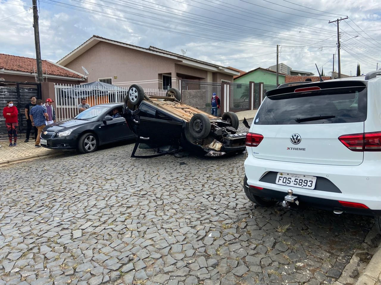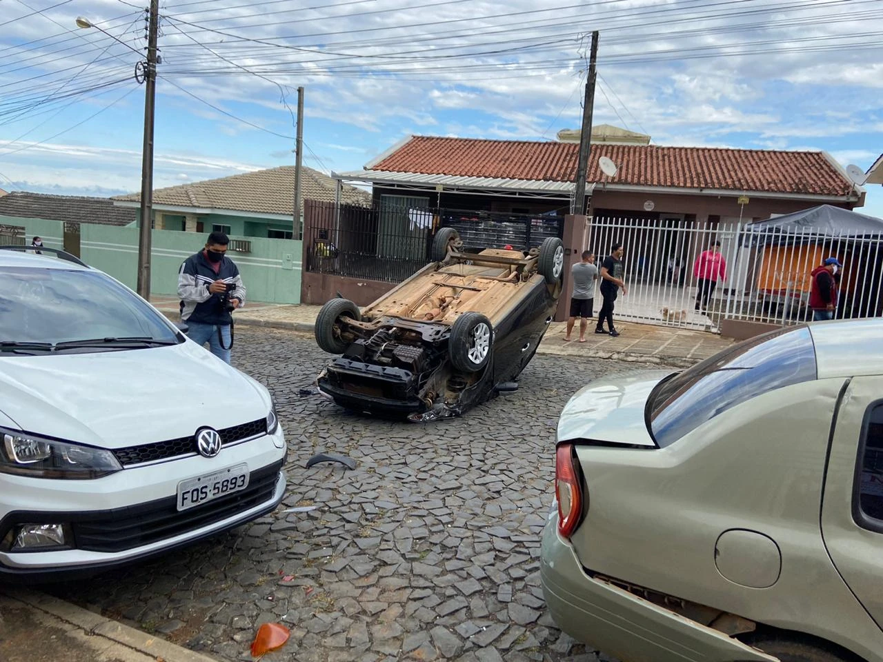 No início da tarde desta sexta-feira, 5, um acidente envolvendo três veículos deixou um veículo capotado no meio da Rua Michel Laidane, na região do Sabará. O fato aconteceu por volta das 12h30.