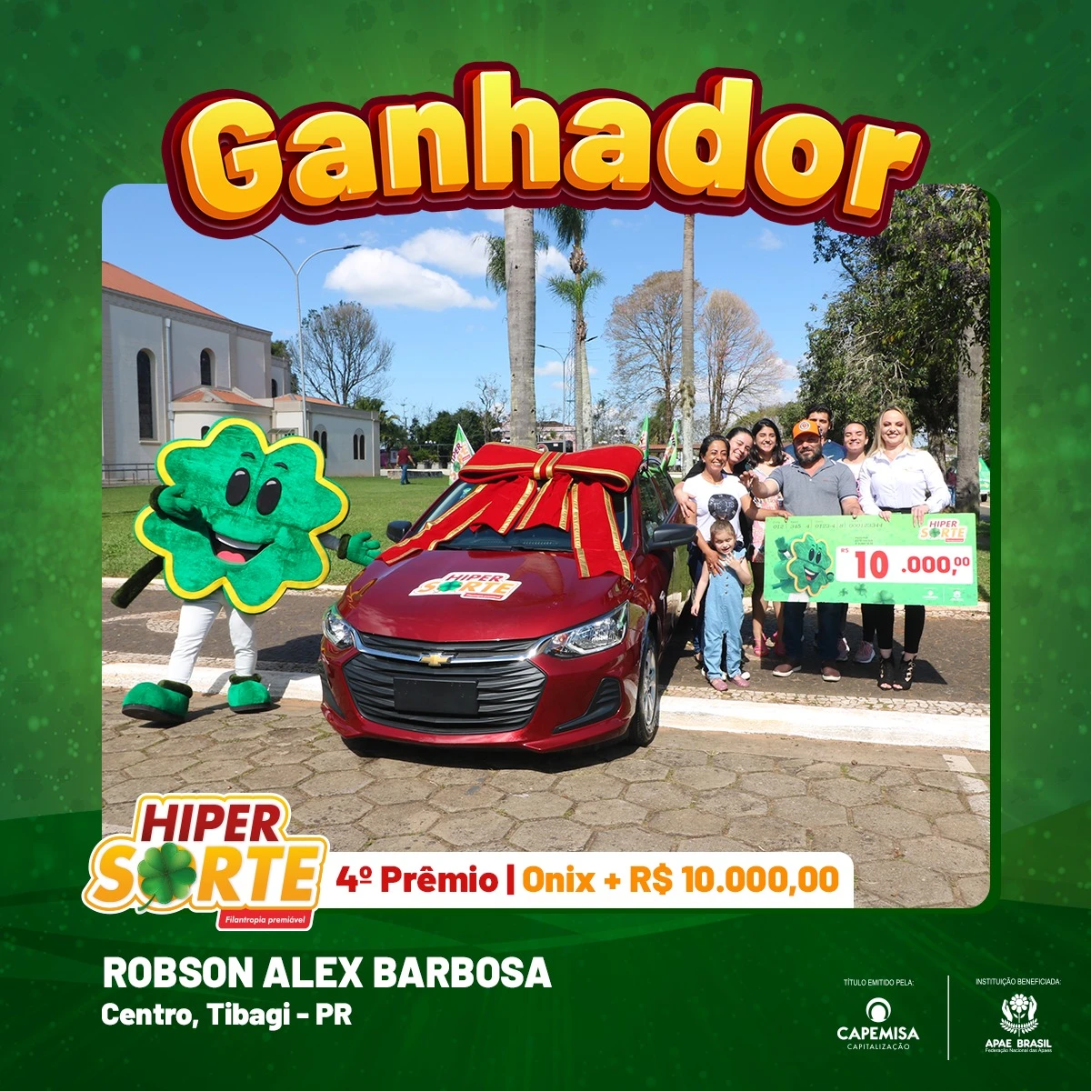 Já o sortudo que levou para casa um Chevrolet Ônix 0 km e R$ 10 mil foi Robson Alex Barbosa, morador de Tibagi.