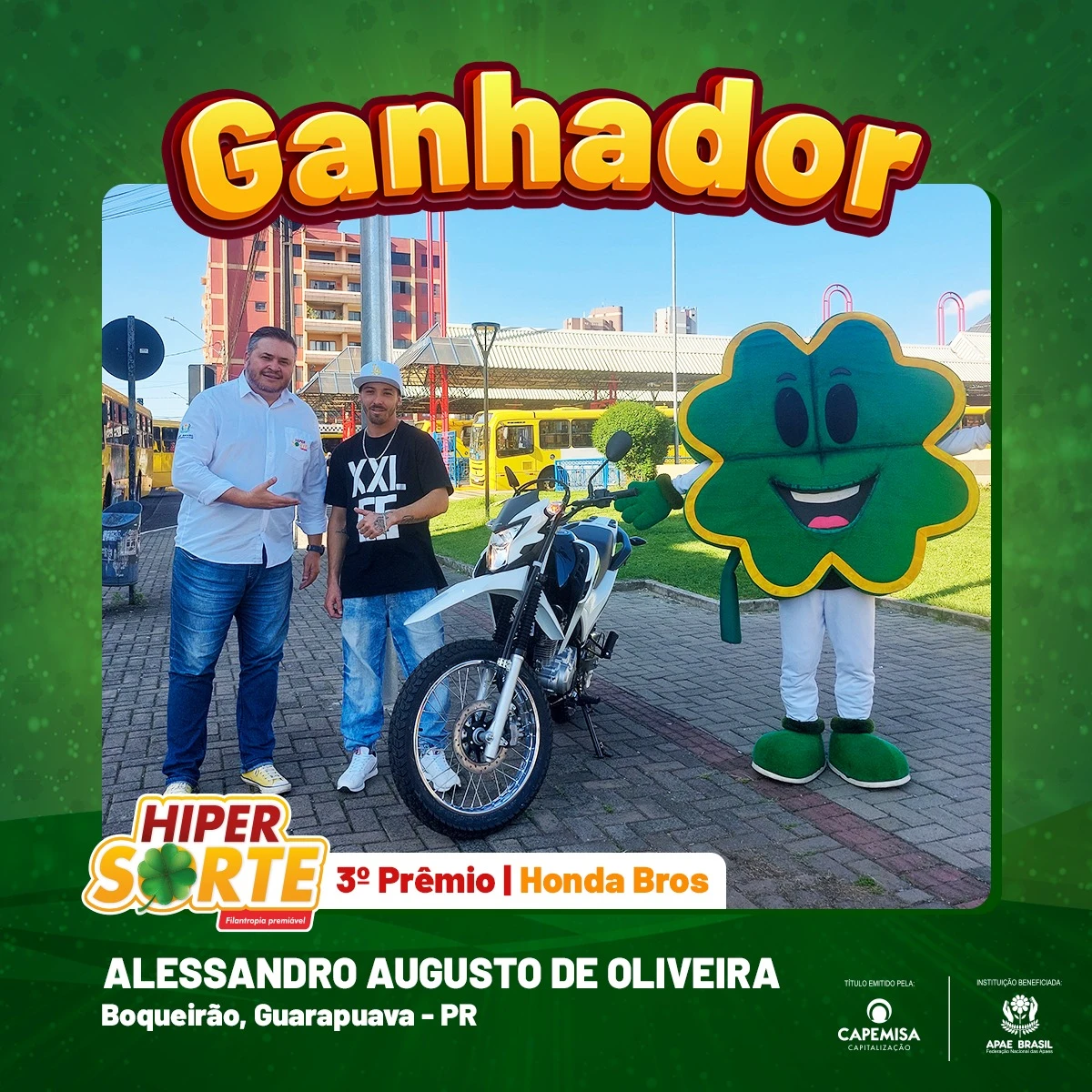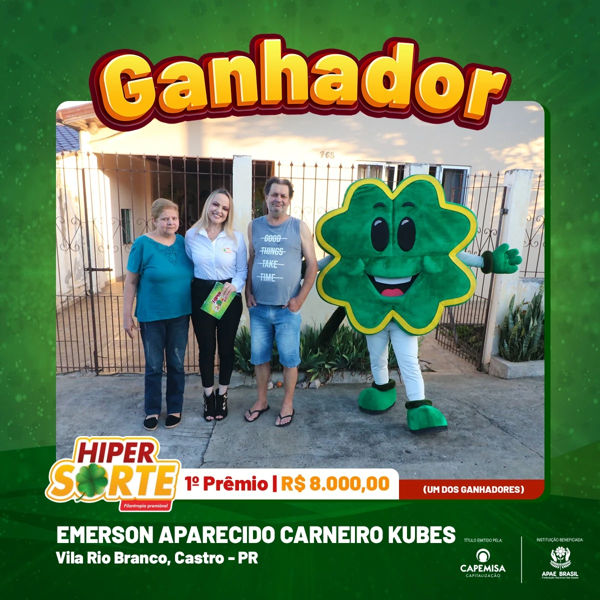 No último domingo (20), o Hiper Sorte premiou cinco moradores da região com prêmios em dinheiro, uma moto e um carro. O primeiro prêmio, de R$ 8 mil, saiu para duas pessoas: Emerson Aparecido Carneiro Kubes, morador de Castro, e para José Leomar Magalhães, morador de Antônio Olinto.