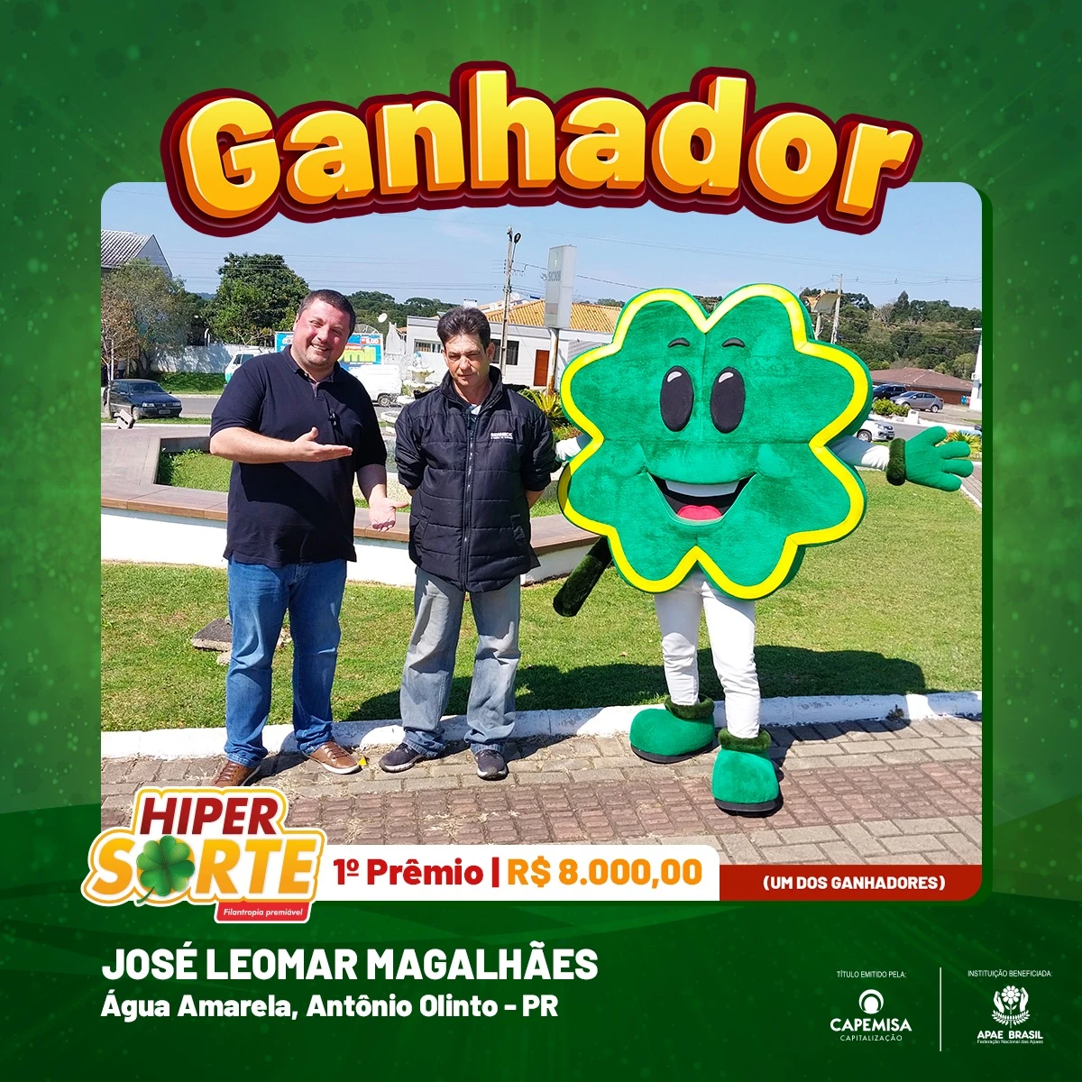 Adquira o seu Hiper Sorte com um dos representantes, pontos de venda ou pelo aplicativo ‘Hiper Sorte Campos Gerais’. Ao adquirir o título de capitalização você também ajuda a Apae Brasil – Federação Nacional das Apaes, cedendo o direito de resgate.