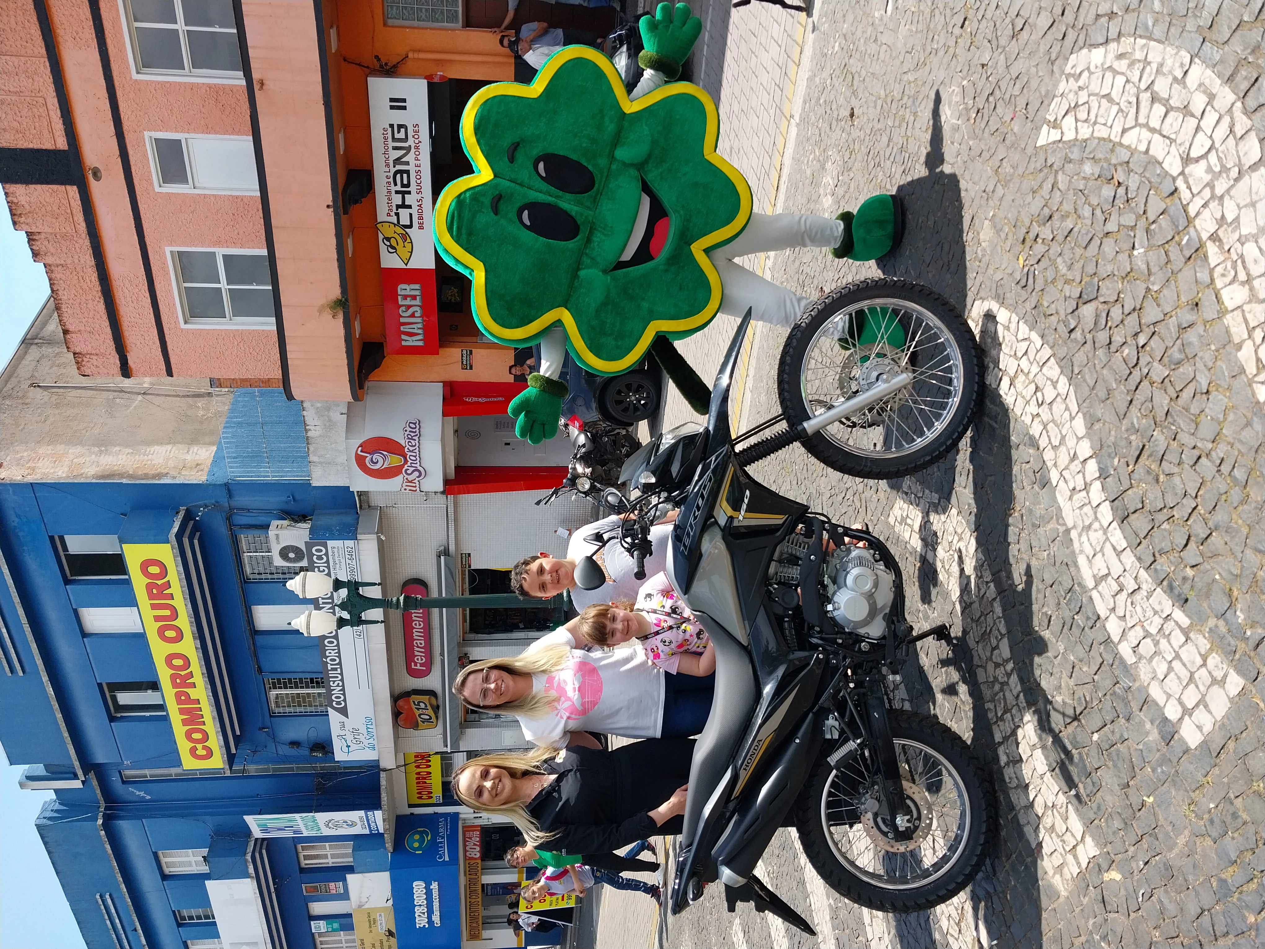 Já quem levou o terceiro prêmio, uma Honda Bros, foi Victor Hugo de Oliveira, morador da vila Oficinas, que além de ganhador é também o vendedor do título. Durante a entrega, ele foi representado pela esposa, Jaciele. "Muito contente, muito feliz. A gente está muito feliz de ter ganhado o prêmio, de ter ajudado a Apae Brasil e convido a todo mundo que também participe da Hiper Sorte",