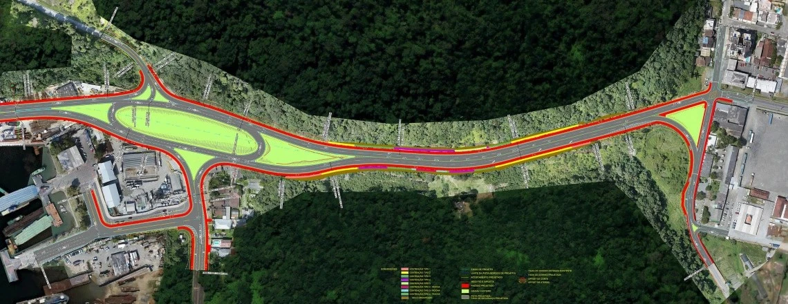 Há previsão de movimentação de 200.000 metros cúbicos de terraplenagem, entre escavação e aterro e execução de 50.000 metros quadrados de camadas de pavimentação, que contemplam reforço de subleito, sub-base, base e revestimento asfáltico.