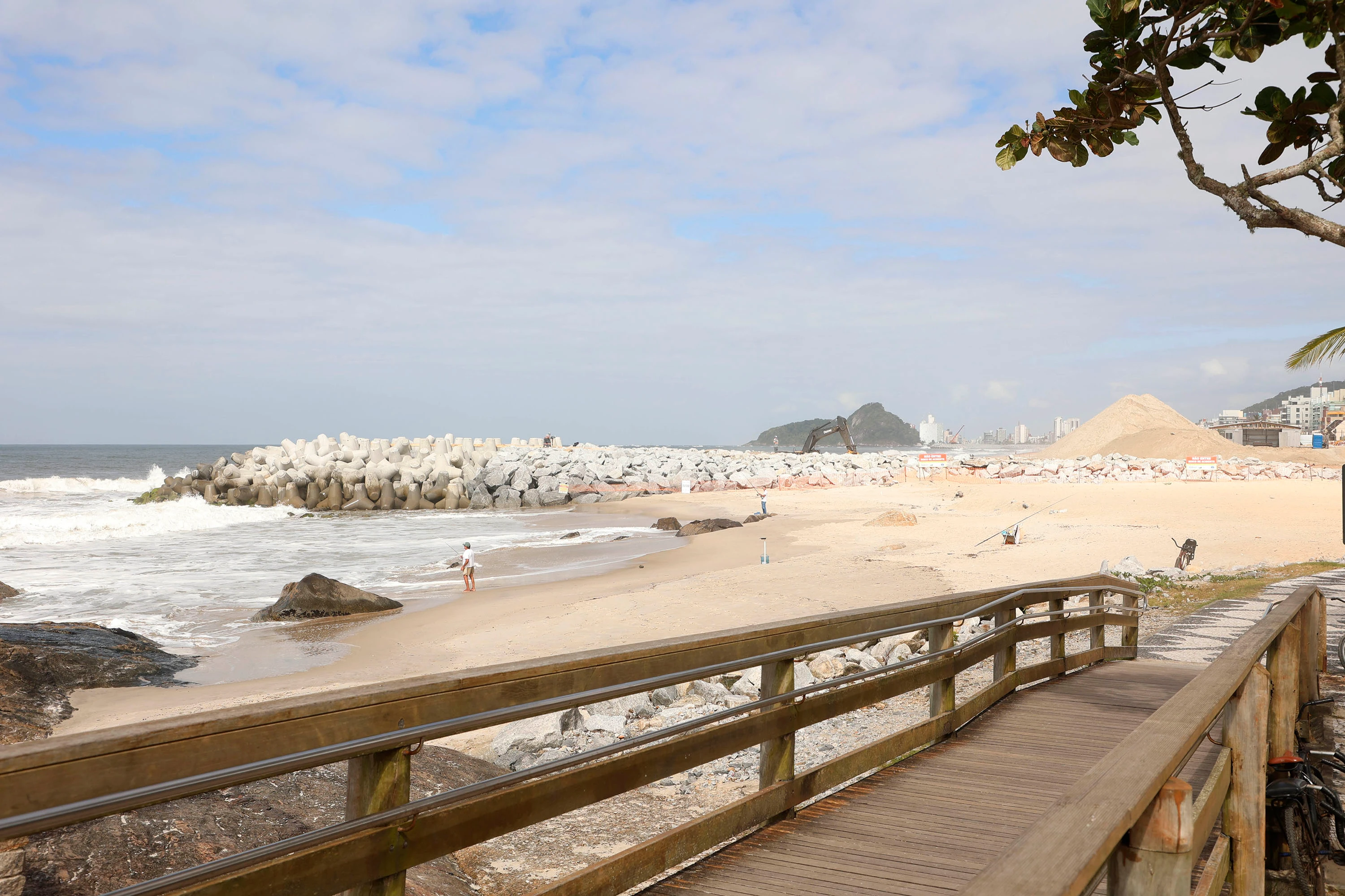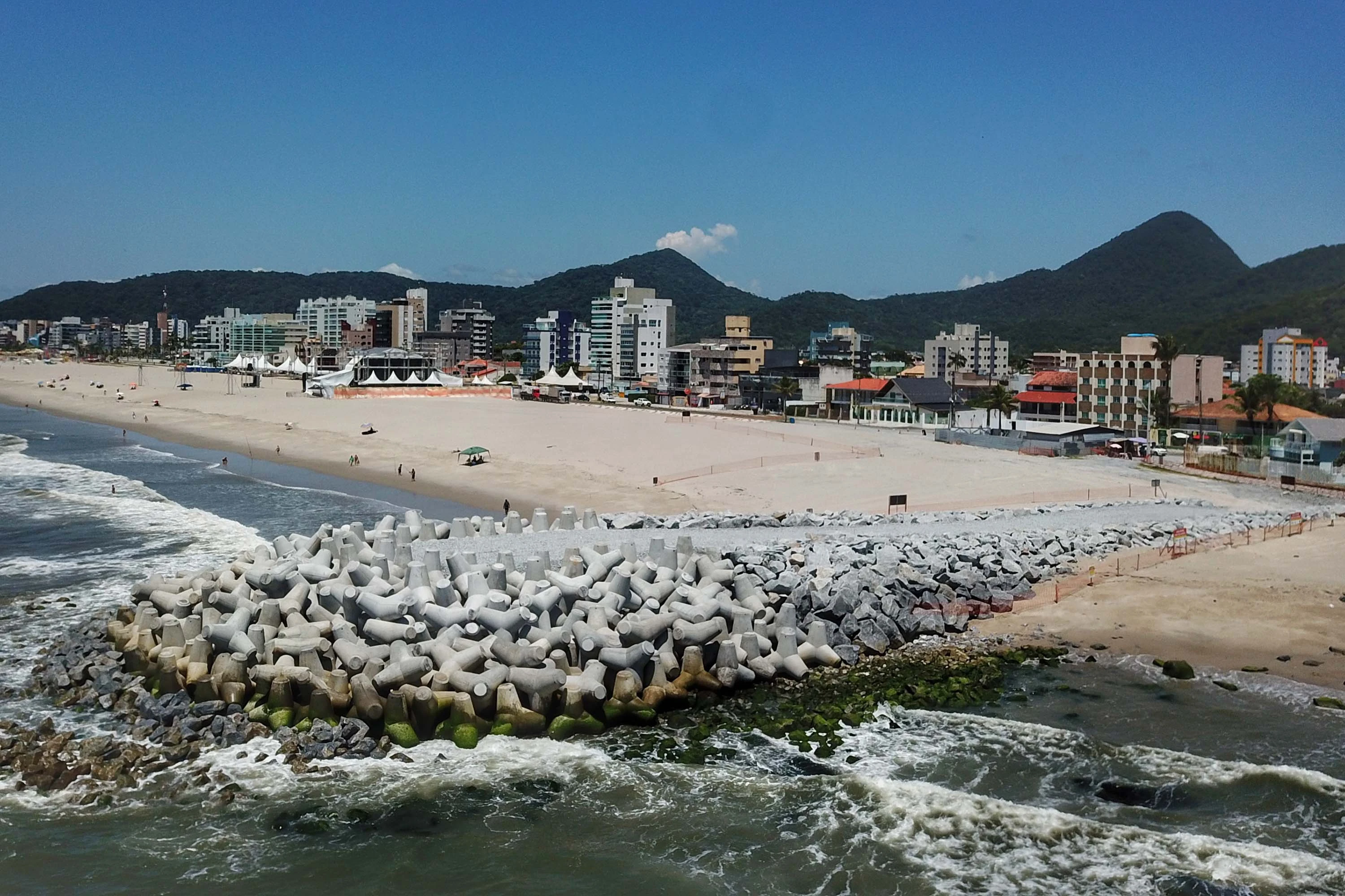 Agora, exatamente 366 dias depois, o projeto atingiu 80% de conclusão, segundo balanço mensal divulgado nesta segunda-feira (26) pelo Instituto Água e Terra (IAT) em parceria com o Consórcio Sambaqui, grupo de empresas responsável pelas obras, vencedor da licitação pública. O engordamento da faixa de areia, inclusive, foi completamente concluído, assim como algumas das estruturas marítimas semirrígidas.