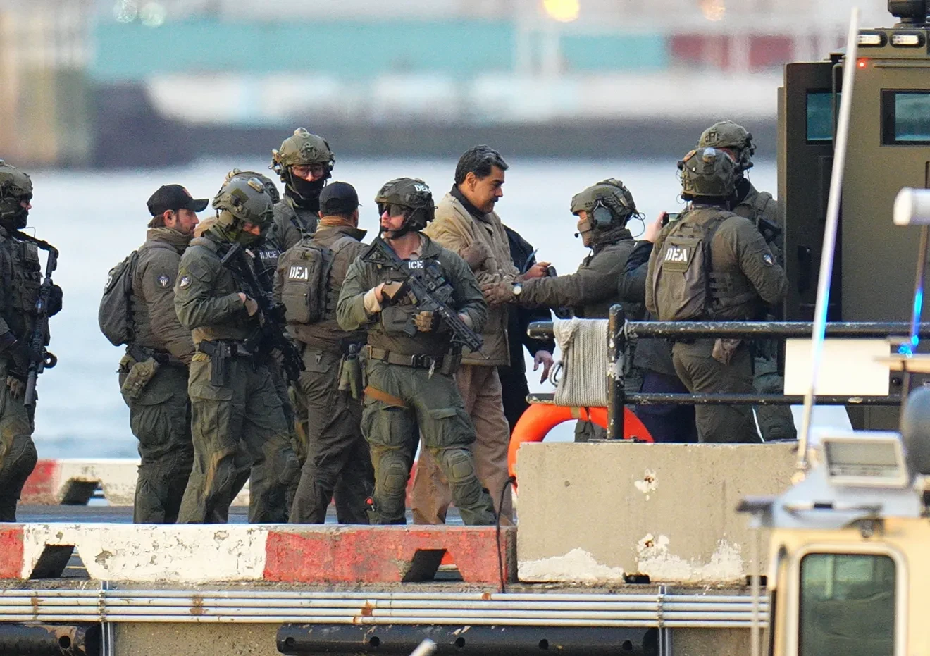 Conforme informações da CNN, os dois foram fotografados a caminho do tribunal, logo após pousarem de helicóptero, vestindo uniformes de presidiários e sendo escoltados por agentes federais armados. Nas imagens, Maduro apareceu algemado.