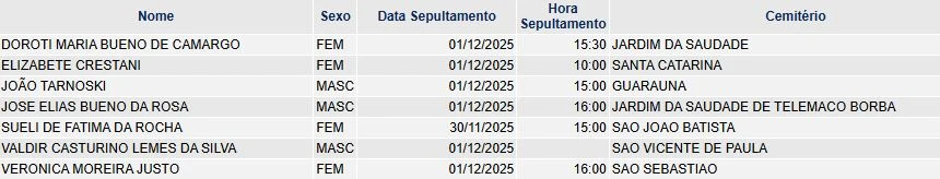 Falecimentos de 30/11/2025