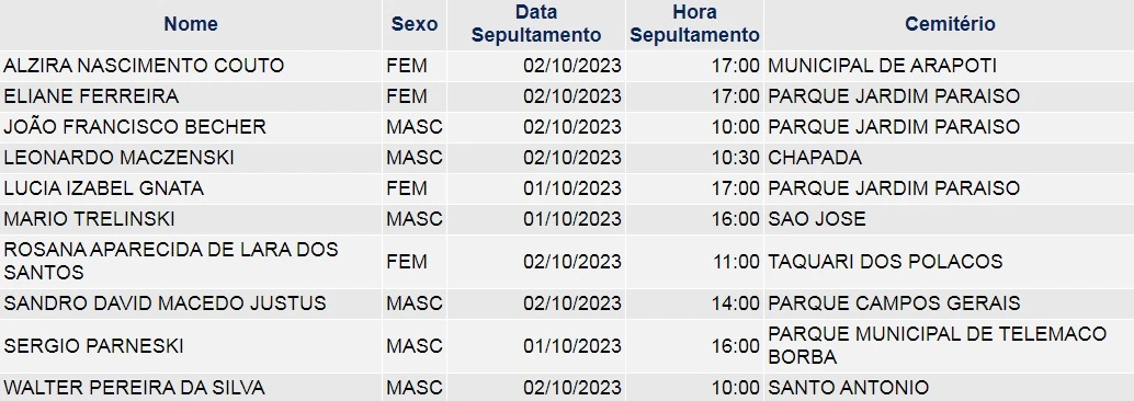 Obituário – 02/10/2023