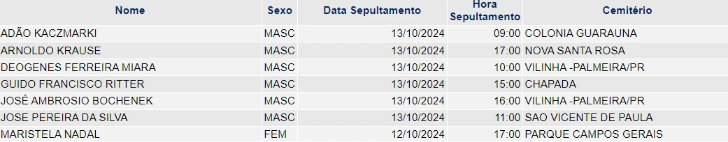Obituário – 13/10/2024