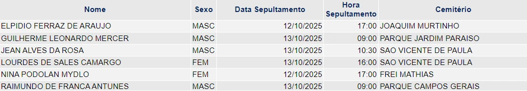 Clique aqui e veja os últimos falecimentos registrados em Ponta Grossa