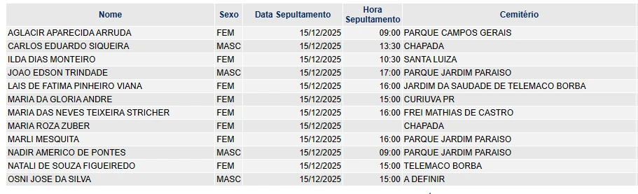 Clique aqui e veja os últimos falecimentos registrados em Ponta Grossa e região