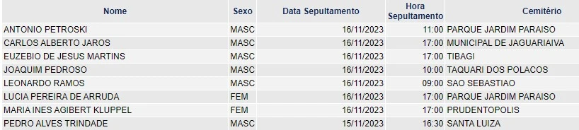 Obituário - 16/11/2023 | D'PontaNews
