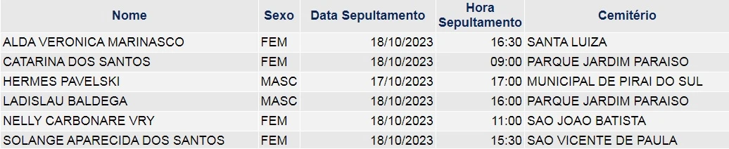 Obituário – 18/10/2023