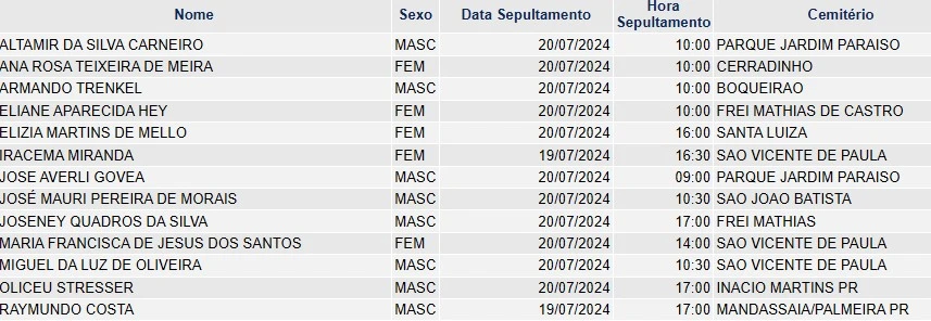 Obituário - 20/07/2024