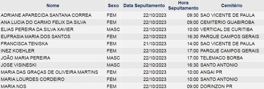 Obituário – 22/10/2023