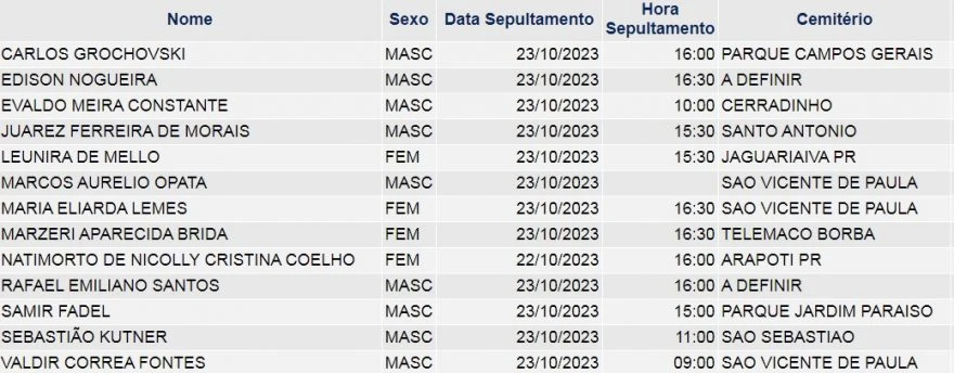 Obituário – 23/10/2023