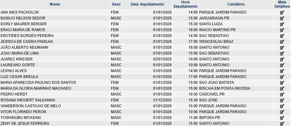 Clique aqui e veja os últimos falecimentos registrados em Ponta Grossa e região
