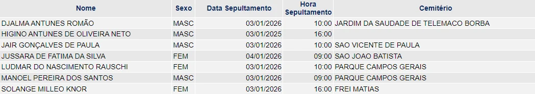 Clique aqui e veja os últimos falecimentos registrados em Ponta Grossa e região