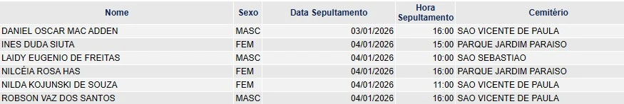 Clique aqui e veja os últimos falecimentos registrados em Ponta Grossa e região