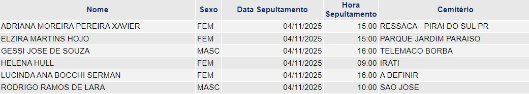 Falecimentos de 03/11/2025