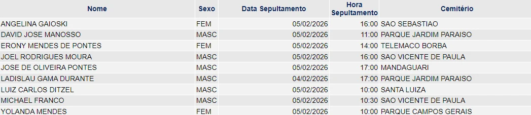 Falecimentos de 04/02/2026