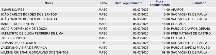 Falecimentos de 06/03/2026