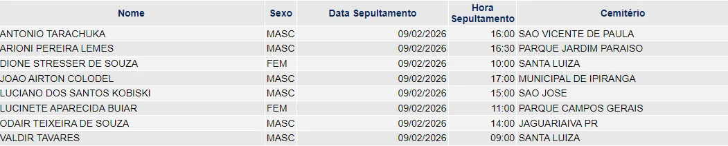Clique aqui e veja os últimos falecimentos registrados em Ponta Grossa e região