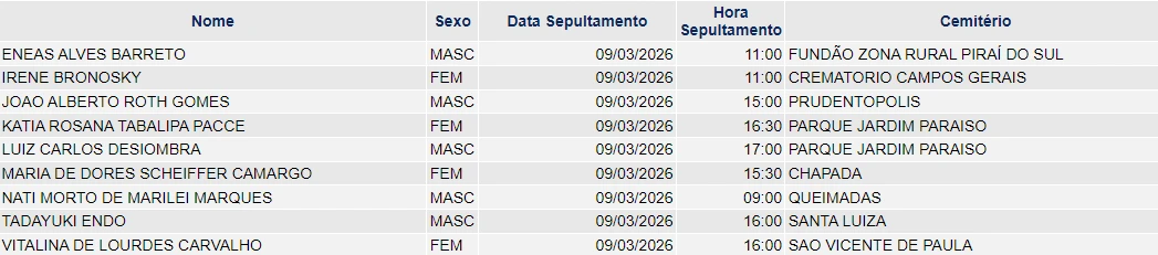 Clique aqui e veja os últimos falecimentos registrados em Ponta Grossa e região