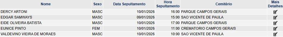 Clique aqui e veja os últimos falecimentos registrados em Ponta Grossa e região