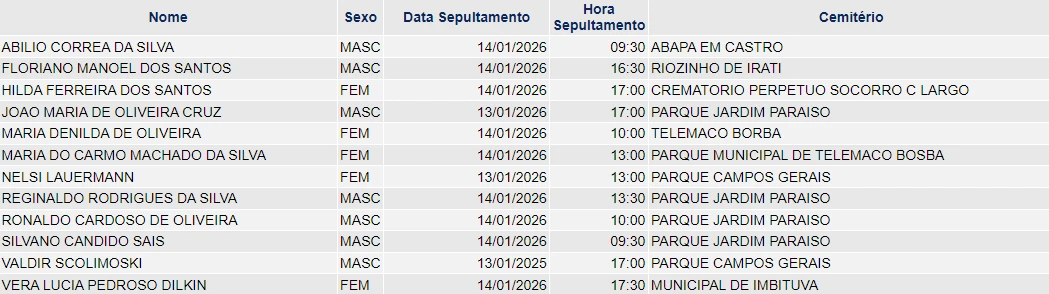 Clique aqui e veja os últimos falecimentos registrados em Ponta Grossa e região