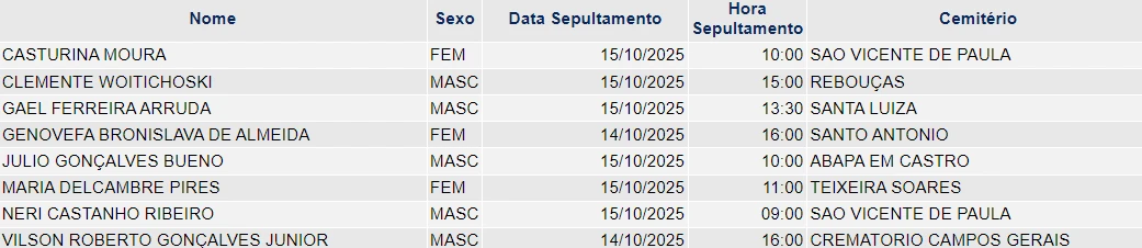 Clique aqui e veja os últimos falecimentos registrados em Ponta Grossa