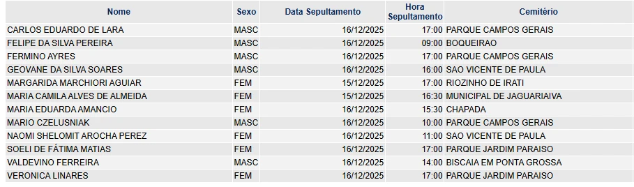 Clique aqui e veja os últimos falecimentos registrados em Ponta Grossa e região