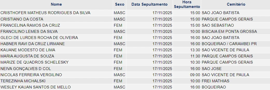 Clique aqui e veja os últimos falecimentos registrados em Ponta Grossa e região